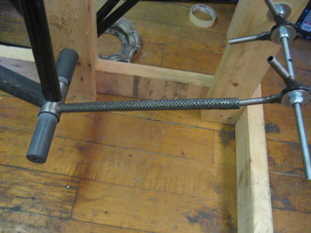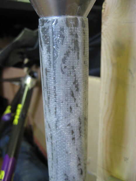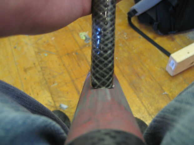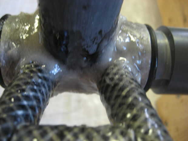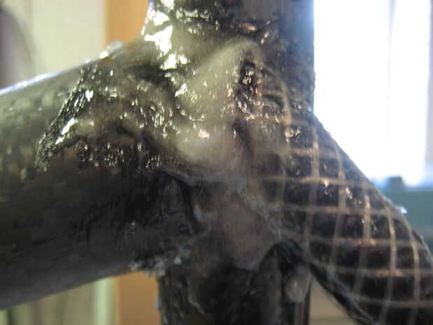 Usé algunos resina para unir los tubos. Tuvimos algunos de fibra de vidrio molido que he añadido para espesar la resina por lo que permanece en las juntas mejor.