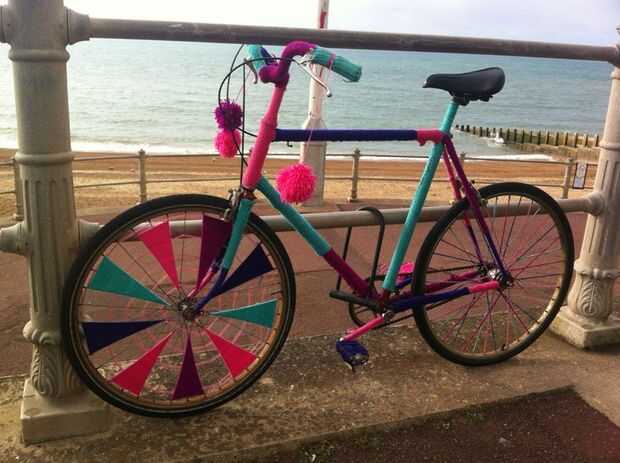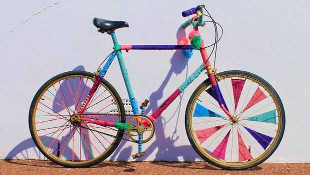 3. coser cada pieza de tejido cerrado con más lana, mientras que tienes en la punta de la bicicleta para que se hace. Cuando todo el marco, barras de la silla de montar, tanto como sea posibles, se cubre en poco lanudos calcetines, coserlas juntos, convirtiéndose en un calcetín de moto grande.