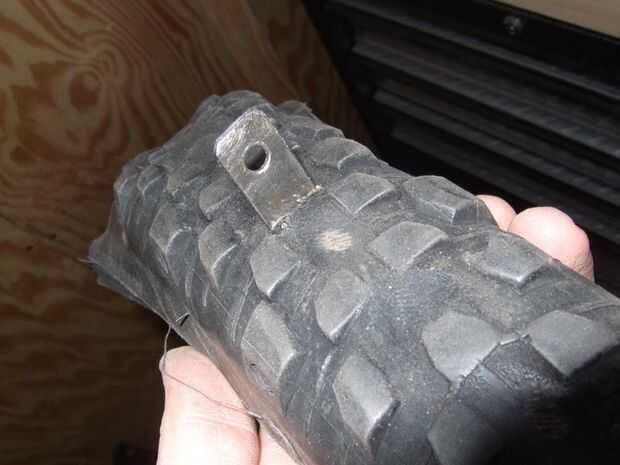 Con la pestaña soldada al arco, comprobar su medida y luego perfore un agujero para montar el arco. Necesita hacer un corte en su defensa-neumático para empujar la pestaña por y entonces usted puede probar montar el arco para asegurarse de que todo se ajusta a derecho.