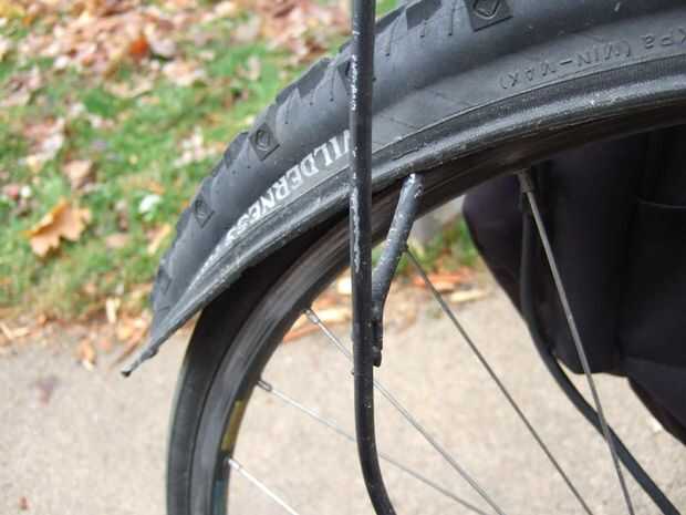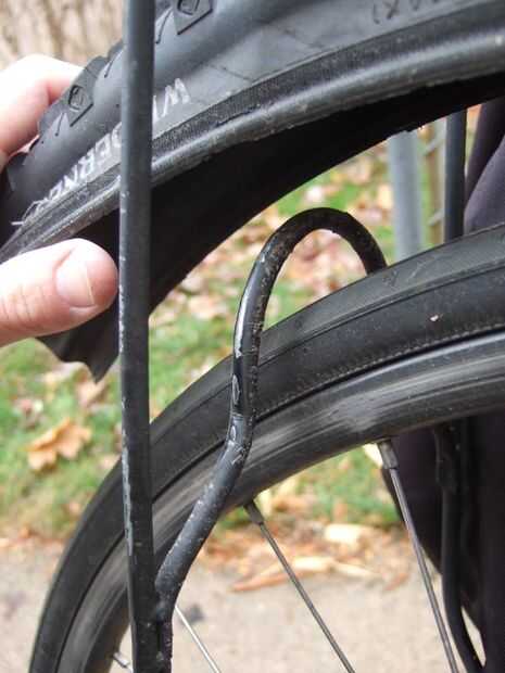 La parte trasera del guardabarros trasero se lleva a cabo de la rueda por un arco soldado a los soportes traseros de mi estante de acero de carga. Esta es simplemente otra sección de tubo de acero de desecho doblado a la forma, con los extremos golpeados con un martillo, la pintura cepillado de alambre de la rejilla y el arco soldó con autógena en lugar. El guardabarros trasero se basa sólo en el lugar. En la práctica esto funciona bien.