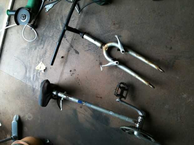 Entonces puse todos los bits de la bicicleta en y es tiempo de unidad de prueba. Tuve que parar un par de veces para ajustes pero se sentía muy fuerte. Al principio dejo el tubo del sillín se deslice en la viga superior así que todo mi peso presionado en la viga inferior solamente. Fue agradable y elástico, pero no en el buen sentido. No hubo ninguna absorción de choque y no mejorar el paseo en todo muy animoso. Me gustó así que puse un par de tornillos en dejar la tija resbale. La moto ahora se siente sólida a montar y dio un montón de pruebas: subir y bajar aceras, caballitos, stoppies, máxima velocidad por el camino, prueba de carga de 150 kg. Todo sosteniendo.