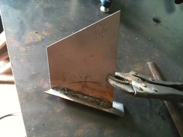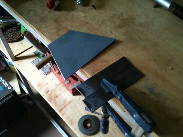 Hoy ha sido un grande, 7 horas en la bicicleta. Tenía algunos trozos de placa de 2mm así que cortar algunas piezas para hacer un soporte de fijación para el tubo de dirección. Después de un montón de corte, pulido y puntas presentación estaba preparada para la soldadura.