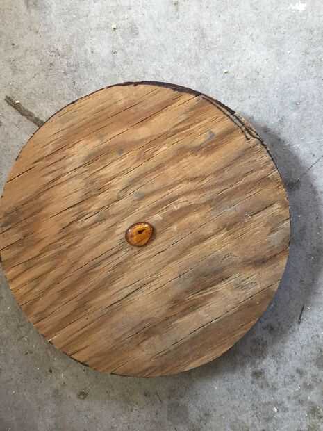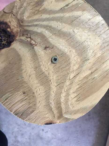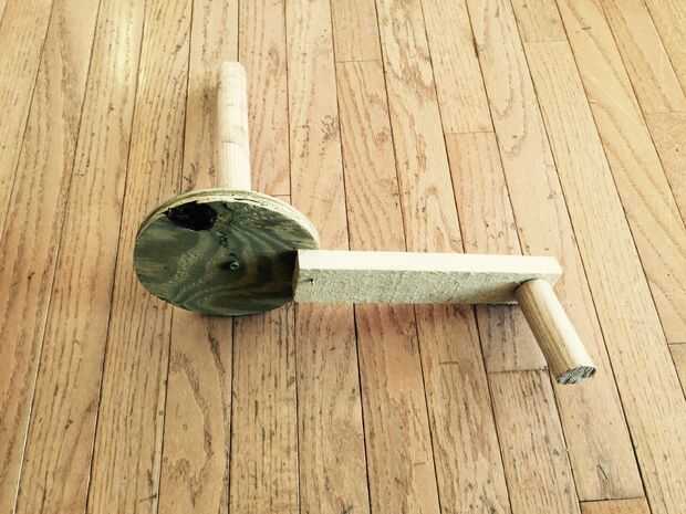 uno de los 6 en círculos y encontrar el medio adhesivo y tornillo pasador con dos tornillos (no hacer esto con el otro lado todavía) Haz un pequeño trozo de madera y el tornillo en el borde del círculo entonces el taco y atornillar en el tablero pequeño