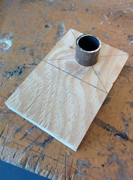 La sección de tubo de 32mm corta del martillo en el agujero de una de las juntas, Aplique pegamento en la parte superior de la otra pieza y martillo el tubo hasta que demasiado. Apriete todo en una prensa para secar.
