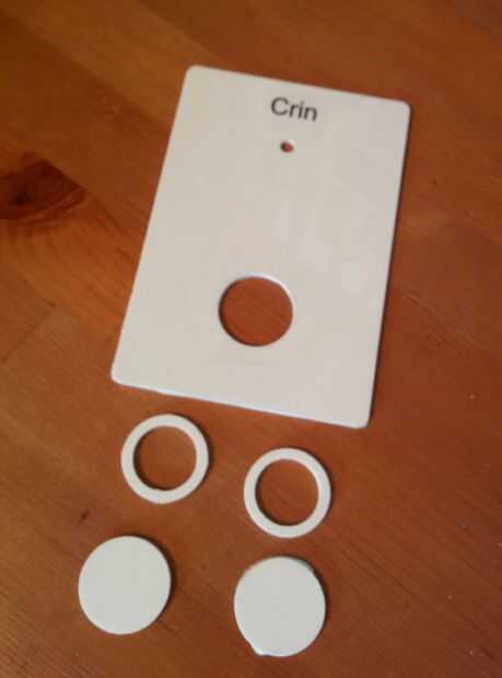 Algunos acrílico para crear dos placas con orificios para el tubo de enchufe y espiga del corte del laser. Corte de 4 anillos con 33mm de diámetro interno y diámetro externo de 39 mm. cortar 4 círculos, 39mm de diámetro. Pegar dos de cada uno en una pila para crear un casquillo de extremo de las tuberías.