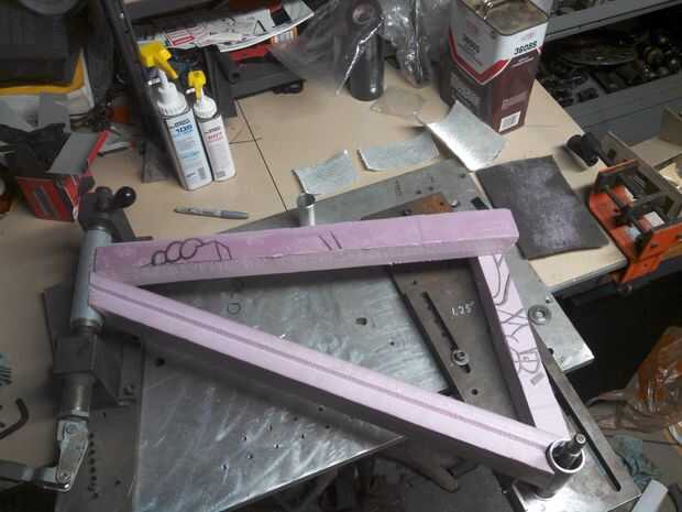 Empecé con los puntos de anclaje para la plantilla marco. En la plantilla que estoy usando, esos puntos son el tubo de dirección, pedalier y la parte superior del tubo del asiento.