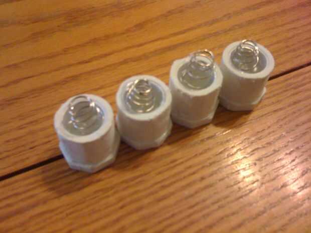 En un mundo ideal, cheapy resortes soporta el peso de varias veces se rompieron por el 5 x pilas C indefinidamente. Lamentablemente sin embargo, los resortes se convierten Cruncheando y doblan debido a las fuerzas del montar a caballo. Como resultado, vamos a realizar un truco sucio, pero muy efectivo para mantener siempre una conexión entre nuestros muelles y terminales de la batería.