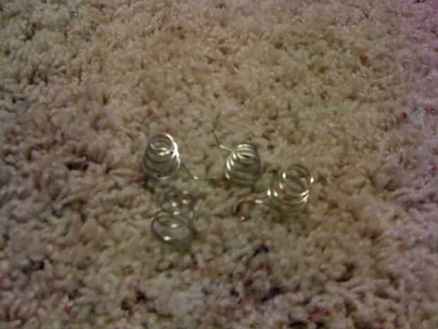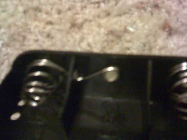 Hay cuatro grandes manantiales dentro de la batería de Radioshack. Tratar de despegar tanto alambre como usted puede conseguir, si no, siempre puede estirar el resorte para más distancia. Los muelles sin el exceso de cable clip, simplemente destruí el caso con las tijeras para eliminar tanto metal como sea posible.