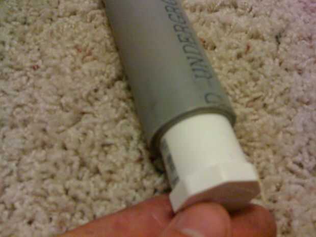 Tenemos 10 C baterías, cada uno funcionando a 1.2v para un total de 12v. Cada batería es de aproximadamente 1" de diámetro. Vamos a utilizar una tubería Conduit eléctrica PVC de 1" para hacer dos tubos de cinco baterías. Mientras que una batería C es externa diámetro 1", un tubo de PVC de 1" tiene "dar espacio", lo que es ligeramente más grande que el diámetro interior de 1". Blanco tuberías PVC pipa tiene dar más espacio (paredes más delgadas).