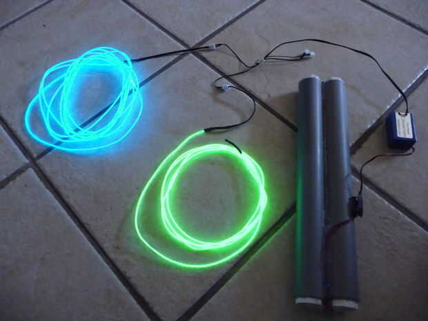 Conecte el conector quad al inversor y conectar algunos cables de EL. Trate de poder más que el mínimo, apenas para ser seguro para probarlo (ha significado disponer de carga). Simplemente sujetar el conector 9v a la batería, sólo asegúrese de que el positivo es obvio que va en positivo (es su cableado, usted puede ajustar a su configuración y use un multímetro para comprobar el voltaje).