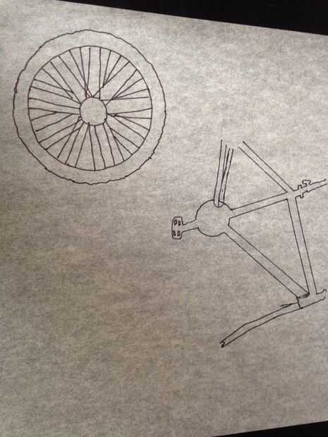 Remonta el cuerpo de la bicicleta y las ruedas por separado porque sabía que sería ser imprimirlas por separado. He usado un rotulador de trazo, pero un lápiz funciona igual de bien.