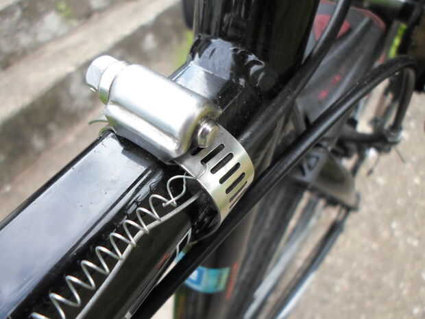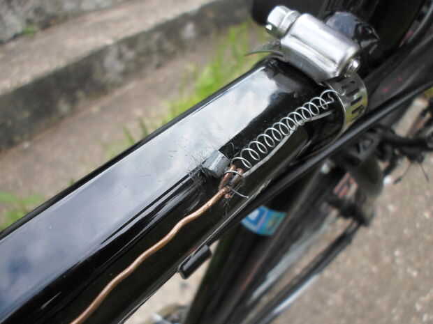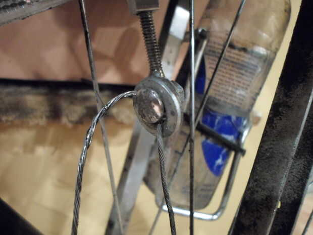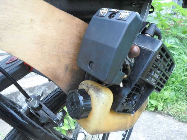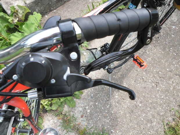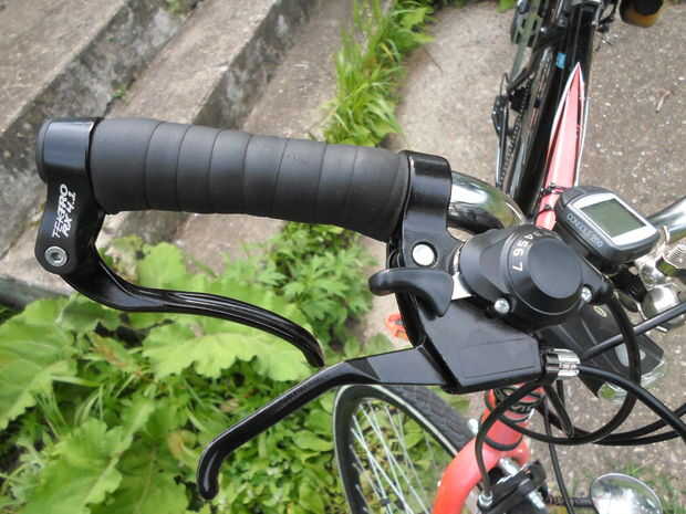 La primera vez construí esta bici, usé un par de palancas de freno había sacado de una vieja bici para crear el sistema de control para el motor. Funcionaba, pero el manillar tipo gota me dolía la espalda, y tenía mantener mis manos cerca del poste, y esto era espantoso al ir a velocidades altas. Puedo lograr hasta 30mph yendo colina abajo. Con de Manila de Alivié este problema por reemplazar esta un tipo plano (sacado de la misma bici de la cual rescaté las palancas de freno), pero resultó solo un parche y había otros problemas. El sistema de cambio era de tipo rotativo, y no encajaron bien en el nuevo manillar, y de no manos de había mucho espacio para las. Y las palancas de freno estaban lejos y difíciles de agarrar, no pecado mencionar estas estaban bien apretadas al manillar. Aunque sí cuentística usar la bici, no me sentía seguro montar a ella. Decidí echar a un lado el presupuesto para el proyecto y me compré un par de palancas combinadas, de freno y de cambio. Incluí el enlace introducción de en el; el costo final fue alrededor de $38. No puedo hacer el suficiente hincapié en cuanto más segura estas han hecho mi bici. Con ellas, puedo cambiar y frenar con el mismo control. Las otras palancas, las invertidas, controlarán el embragues y el serie. El de montar para cable del embargue, utilicé un soporte para cable rescatado de un freno tipo calibrador, y lo monte en el costado del trozo de aluminio acanalado. El último paso aquí es sujetar todo con correas de plástico al cuadro. Instalar el serie es un poco más complicado. Debido al carburador, es posible que el muelle del serie no se pueda volver a su posición de reposo. Utilicé el cable de serie original porque fue fácil conectarlo al carburador. El extremo suelto del no cable tuvo ser sujetado al cuadro para que se moviera. Usé una abrazadera para mangueras para hacer esto. A continuación, con un trozo de cable de cobre, conecté el cable original del serie al cable de freno, rompe hasta la palanca de serie en el manillar. Tendrás experimentar un poco para acertar el montaje y tener todo bien ajustado de manera todo funcione bien. El siguiente paso es poner los controles una prueba e vovere a intentar montar a la bici.