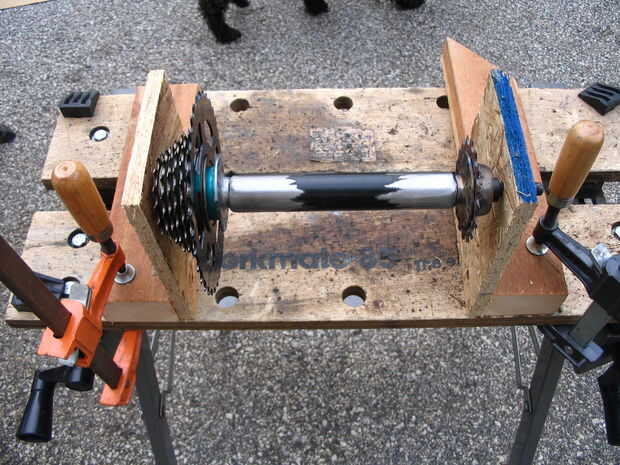 Había soldado un piñón 17 dientes de una rueda libre de donantes en el lado opuesto de la rueda libre.