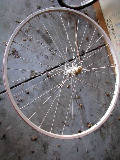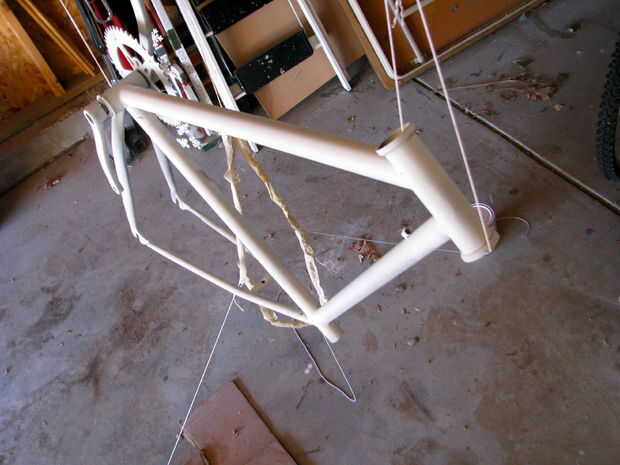 Asegúrese de que poner bastantes capas de pintura blanca en su bicicleta para hacerla realmente blanco. La pintura fosforescente seca claro y brilla mejor sobre un fondo muy blanco. Así que, básicamente, la más blanca y limpia mejor, porque esa es tu moto como se verá.