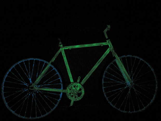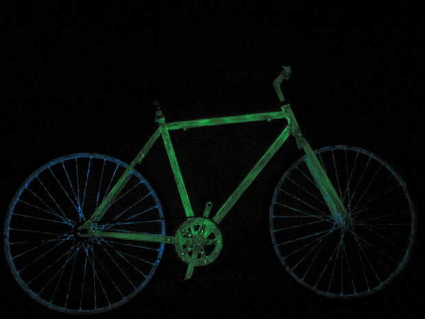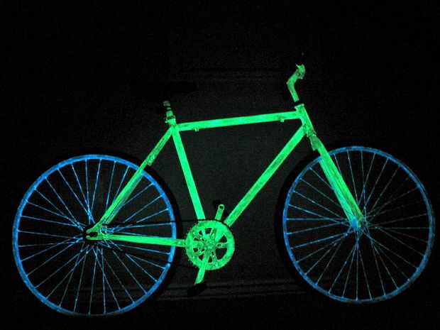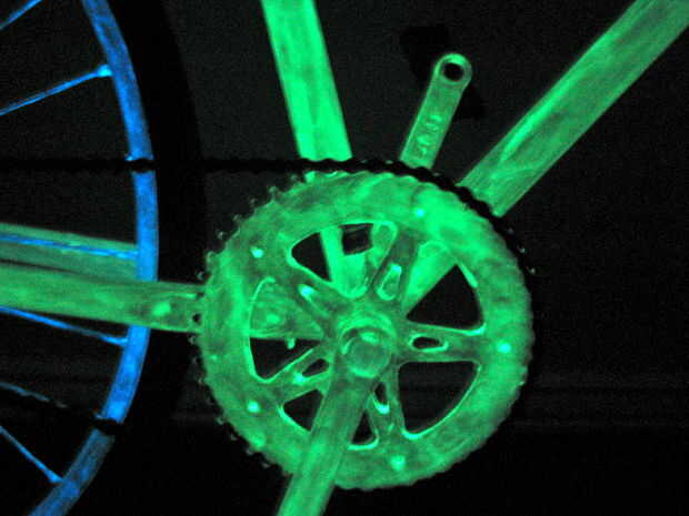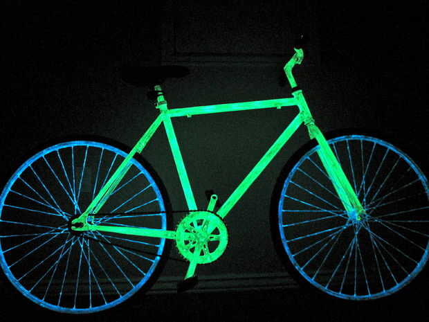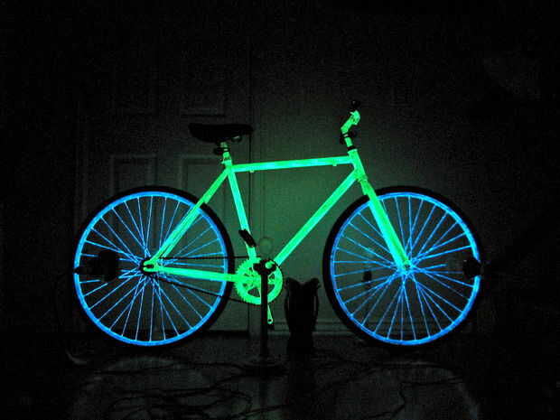 Si usted quiere hacer la moto aún más brillante y aún más... usted puede invertir en luz negra LED tiras para colocar en el marco de la bicicleta. Ahora eso sería genial, y no tiene que preocuparse por la decoloración del resplandor! Aquí es un ejemplo de unas tiras de luz negra de LED convenientes que podría utilizar.