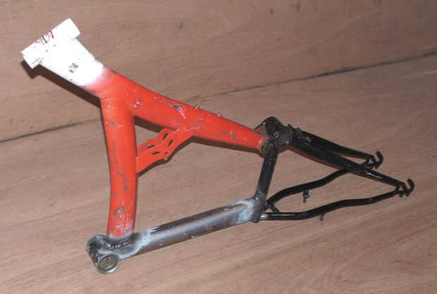Porque este nuevo soporte inferior era el tipo no roscado para un brazo de biela de una sola pieza, no tenía que preocuparse de orientación (sin hilos), sólo puso en su lugar entonces lo sólido (foto 4) soldado. Aunque todavía se abisagra la parte trasera del marco, la adición de su tubo nuevo lo hace como sólido como si eran soldado en cada articulación. Se determinará la longitud del tubo del agregado y la posición del triángulo posterior antes de la soldadura el rastrillo y la altura del marco. Para mi marco, yo quería las estancias de cadena (que ahora están en la parte superior) corren paralelas con la columna vertebral de la estructura.