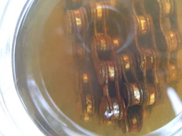 Además, unrusting la cadena por bañarse en WD40 y unjamming cada enlace con dos pares de alicates.