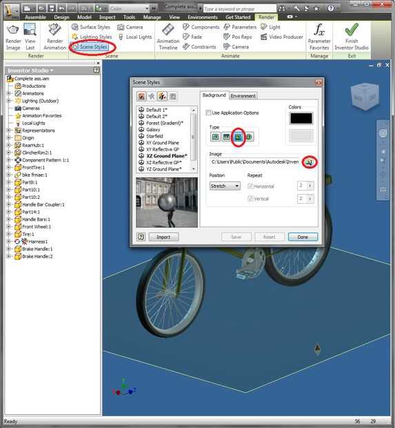 Elegir como tipo de fondo de la imagen y su imagen. (puede que necesite guardar en la carpeta de 2011\Backgrounds\ de Users\Public\Documents\Autodesk\Inventor)