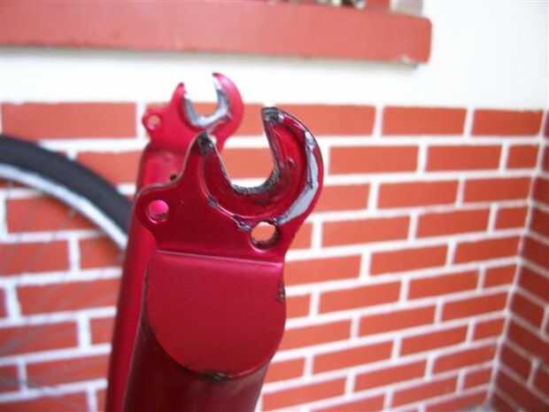 Este paso puede requerir un archivo pero no siempre. Ejes motor eje son afinados de pisos de 180 grados que deben deslizarse bien en las ranuras de la suspensión de horquilla. Si se miden en milímetros (alrededor de 10mm o 1cm entre los pisos) y las ranuras estén en pulgadas las ranuras tendrá que presentarse para aceptar la dimensión del milímetro. Los ejes deben ser apretados y bloqueo en las ranuras así ver cuánto metal quita. Si el eje no esté en las ranuras después de ser insertado las suspensiones tendrá que soldar con autógena para el acero y las ranuras recut y presentado. Eso u otra horquilla o marco tendrá que utilizarse.