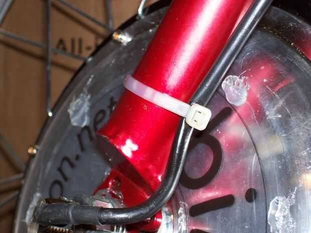 Bridas de nylon funcionan bien para esta operación. Además generalmente puede encontrar el controlador a su gusto - debajo el manillar o en la parte posterior del asiento. Algunos juegos proporcionan incluso un bolso de la batería que se acomode el controlador, así como las baterías para que pueda desconectar y toman todo con usted después de trabar la bicicleta.