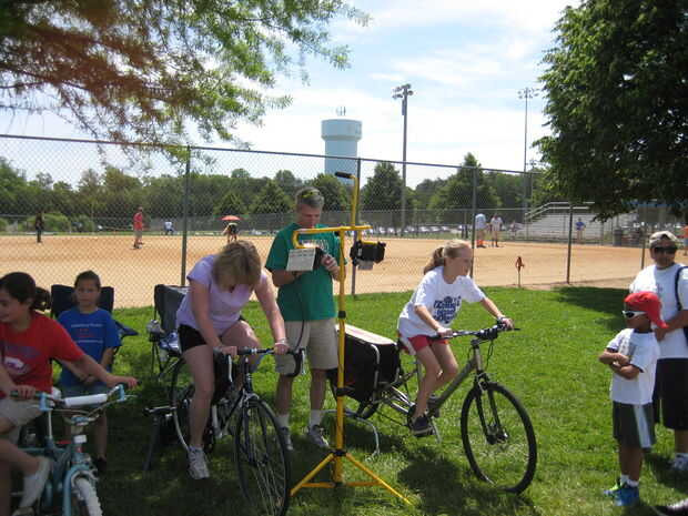 Cuando tenía 7 u 8 años en un miserable día gris frío de febrero mis padres dejar mis hermano y hermanas en el centro de Ciencia e industria (COSI) en Columbus. http://Cosi.org Un lugar maravilloso! Nuestro favorito de todos los objetos expuestos fue el generador de bicicleta interactiva. Súbete y pedalea. Voltear los interruptores y el poder de sus propias luces. Ver cuántos vatios se podría hacer y por cuánto tiempo. Todo el dia seguimos volviendo a intentarlo una y otra vez. Nos lo consiguió. Trabajo, potencia, energía, electricidad, voltios, amperios, vatios, vatios por hora, energía renovable, conservación, limitaciones del cuerpo humano es todo incluido. Dead simple y sin embargo brillante.