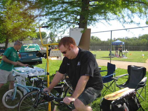 1) desconectar el regulador sin cepillo de la C.C. en la bicicleta eléctrica de la batería, conecte esta carga al conector de la batería anterior (ver imagen del paso 1) 2) bicicleta lugar en el stand, 3) pedal de 4) que el usuario Encienda las luces (carga) - generación de electricidad, aprender y divertirse.