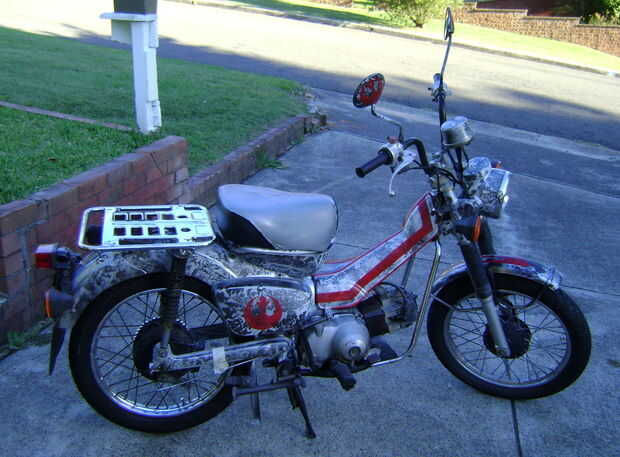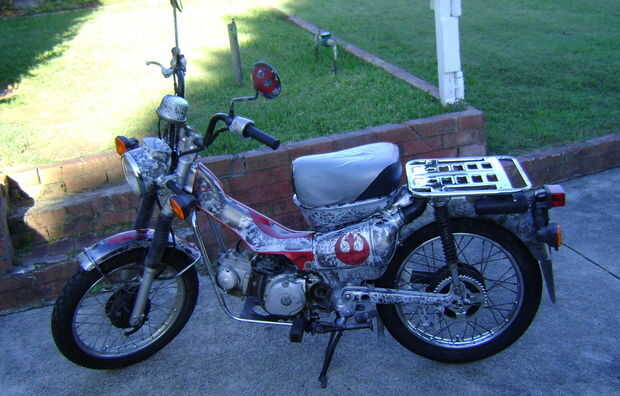 Siempre he sido un poco una tuerca de starwars, y quería hacer mi honda ct110 o "Bici de Postie" como les llamamos en destacan Australia. Tan naturalmente combiné los dos en este mejunje de puro impresionante!