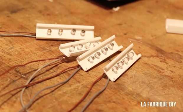 Para hacer los módulos perforé piezas de conductos de plástico.