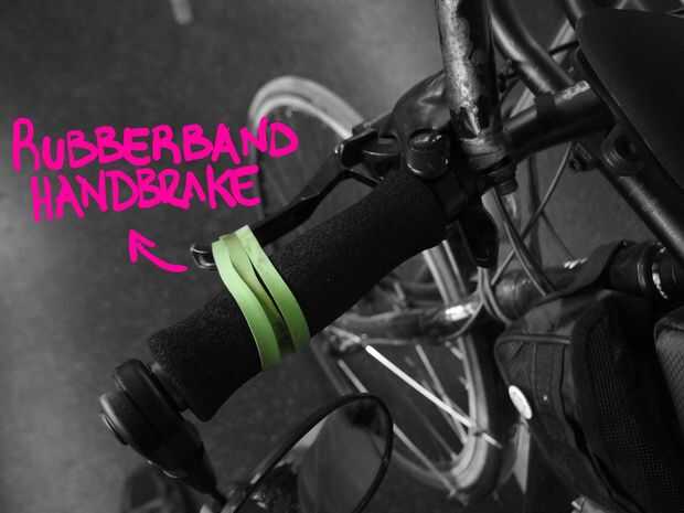 Basta con poner una goma alrededor de las asas y utilizarlo en caso de que usted necesita para mantener las palancas de freno presionadas!