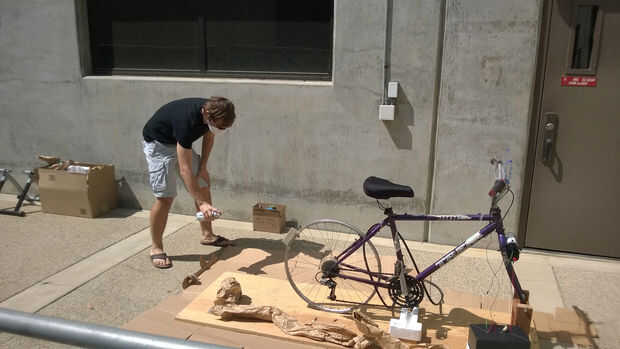 Entonces nos visten la moto y la madera contrachapada con alguna pintura que teníamos en la mano (cuidado de no entrar en los engranajes, electrónica o radios).