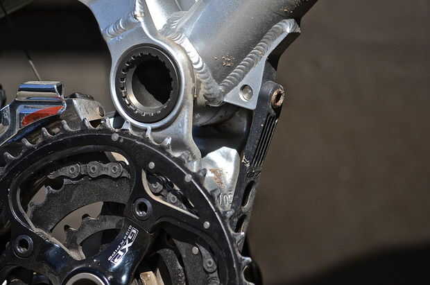 El diseño de paralelogramo del pivote de suspensión trasera de GT iDrive complejo 4 es inteligente y eficaz para detener el pedal bob, especialmente al subir en la silla de montar. Sin embargo, su defecto fatal es el eventual desgaste de aluminio para conexiones de acero en su diseño de rodamiento flotante. Utilizan un estándar 1-1/8" rodamiento de rodillos de un auricular que está suspendido entre una arandela de cono de aluminio split y el hombro biselado interior del oscilación del brazo de vivienda. Funciona bien hasta que el acero del cojinete lleva el aluminio en ambos lados. Un jinete pesado o agresivo lo gastará muy rápido que permite un ligero movimiento durante el pedaleo que se traduce en un pronunciado crujido o haga clic en que se puede sentir en los pedales. Es demasiado débil de un diseño a la última bajo uso normal incluso. Por supuesto, una vez que se usa el aluminio de brazo de oscilación nunca será correcto otra vez. Por lo general, el eje del problema (hay dos) es el más cercano a la caja de pedalier. El uno en el brazo del oscilación. Se obliga a portadores de la peor parte de la pedalada.