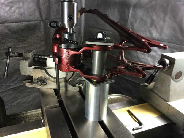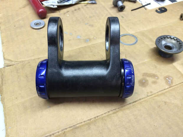 Para reparar el problema de forma permanente requiere de un rediseño. Vamos a empezar por reemplazar el diseño de rodamiento flotante con dos rodamientos de aguja encastre que encajan perfectamente, completamente apoyando el pasador-pivote. Se pueden comprar en Amazon: 1816 B Koyo rodamiento agujas completo complemento dibujado Copa, abierta, pulgadas, 1-1/8" ID, 1-3/8" OD, 1" ancho. El siguiente paso es encajar los rodamientos nuevos en el brazo del oscilación de la vivienda que requiere una operación de fresado y la creación de un buje. Cualquier tienda de máquina competente puede hacerlo para usted. Llevar el brazo completamente desmontados, los cojinetes y el portador del soporte inferior con usted. Les pedimos que encajar los rodamientos en el brazo del oscilación muele hacia fuera y creando el buje. Crítica: el ancho de buje debe tener en cuenta la desviación inferior soporte del portador de la cuando se aprieta. Significado, no puede ser demasiado ancha o se unirá. Encontré que 1,95" a mi me funciono, pero las diferencias de fabricación puede significar que es diferente en su caso. El maquinista debe ser capaz de averiguar el correcto desplazamiento. Traer el perno y tuerca de perno y herramientas con usted para que puedan obtenerlo justo. Debería haber. 020" espacio cuando el portador está comprimido apretando el perno y la tuerca con par moderado. Esto es algo que pueden medir en la tienda. El manguito debe tener un pequeño cajeado volvió a ambos lados que es. 045" profundo para las juntas tóricas. Ver la imagen. Esto permite a. 020" de la junta tórica que sobresalen del buje que sellará todo el sistema muy bien cuando el portador está instalado.