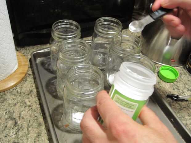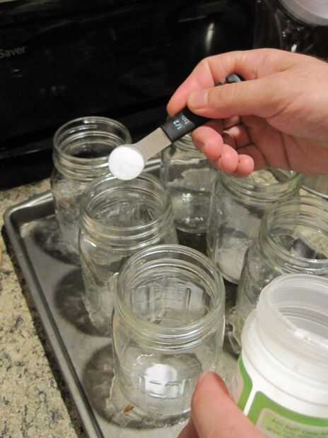 Preparar tarros y añadir 1/2 cucharadita de ácido cítrico a cada frasco.