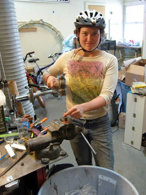 Ahora, utilizando una pieza de metal sobre el diámetro del eje del metal hammer sobre el eje de empuje el eje hacia abajo y hacia fuera del centro de cableado mecánico.