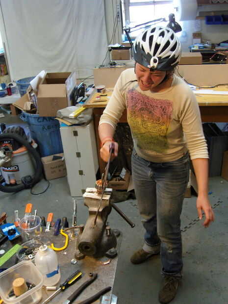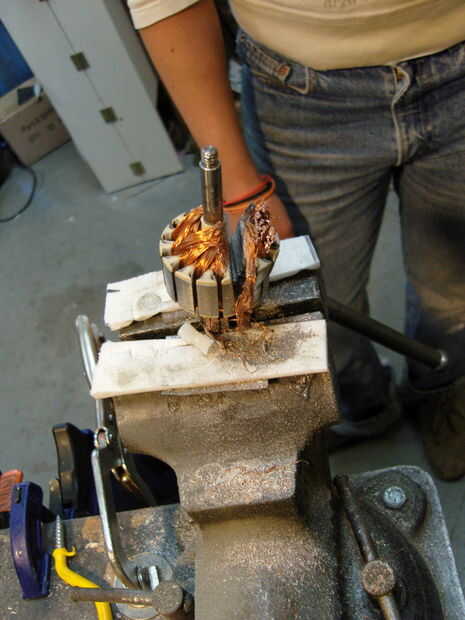 A continuación, fije el eje y todo su cableado mecánico en un vicio abrazadera cerrando la pinza alrededor del metal cables de manera que el eje metálico en el centro no está asegurado por la vice abrazadera.