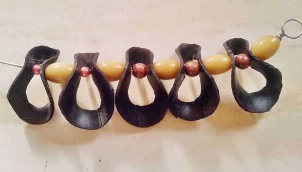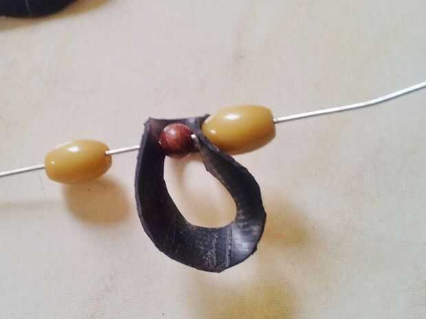 Pasar una perla ovalada grande a través del alambre. Luego pinchan un poco por debajo de la tapa en el pétalo. Introducir una pequeña cantidad y luego meter el alambre por el otro lado del pétalo. Está claro en la foto como se hace:-). Repetir la secuencia hasta llegar a la longitud requerida. Presione firmemente y que todos son bonito y apretado. Hacer la parte del gancho de cierre. Usted es hecho!