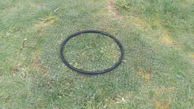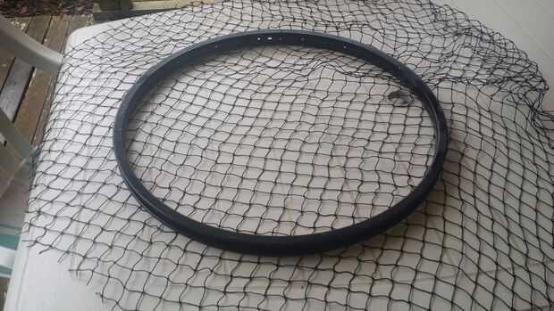 Ponga la red en un área grande y a cortar de manera que el borde puede estar centrado muy bien. Querrá una buena cantidad (30cm/12 pulgadas) de exceso en los laterales, especialmente si utiliza la red para atar (más sobre esto más adelante). La compensación adicional también servirá para ampliar como se tira la trampa, lo que es más eficaz para retener las capturas.