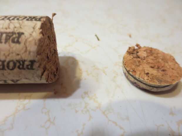 A continuación, cortar el extremo del corcho para conseguir un extremo plano (mantenga el extremo, usted necesitará más adelante). Luego, corte alrededor de él para hacer un punto áspero. Esto le permitirá instalar el corcho en el manubrio. No corte demasiado apagado o el corcho puede llegar a ser demasiado pequeño!