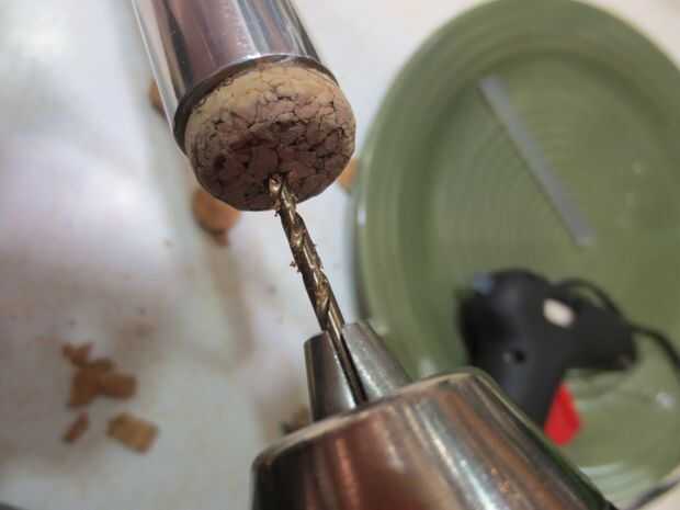 Usando un tornillo más corto que el corcho, atornille el extremo en el corcho asegurado. Esto evitará que el tapón caiga. Eso es todo allí está a él! Una solución fácil que no se ve mal!