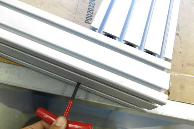 Deslice el hardware y apretar secuencialmente. Antes de que usted apriete hacia arriba Asegúrese de que la cara de las piezas de dos columna queden al ras y son perpendiculares uno al otro.