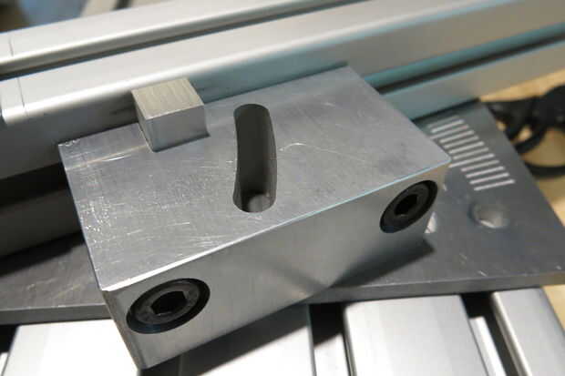 Como el conjunto de tubo de asiento; chorro de agua la placa de montaje, chorro de agua del bloque de pivote, taladre los orificios de montaje (20mm), limpiar el bloque contra los agujeros del fregadero, el bloque de la ranura de la pieza de apoyo, molino de la URL/ras superficie al soporte del 80/20, Monte el bloque de pivote.
