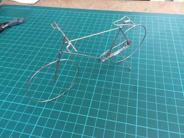 Usé 1mm alambre de soldadura. Tiene buena fuerza y es aún flexible. El aspecto cobrizo sólo añade al modelo terminado.