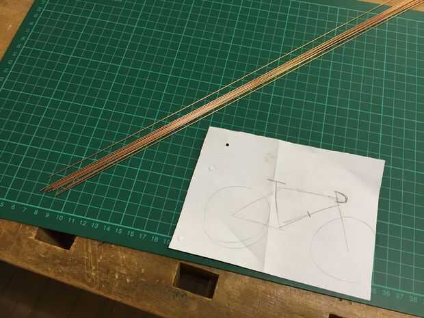 Mi "plan" era una vista lateral apresuradamente bosquejada de la bicicleta. Como se verá, no construyo todo lo posible para coincidir con el bosquejo, pero funcionaba bien.