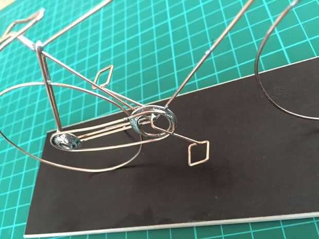 Para mostrar el modelo, me decidí a montar sobre una base. Tengo algunos repuesta madera contrachapada laminada ahí y usa un pedazo de ella para crear esta base. Instalar los puntos de conexión en el alambre con papel de lija y había pegado de la bicicleta en su lugar con pegamento.