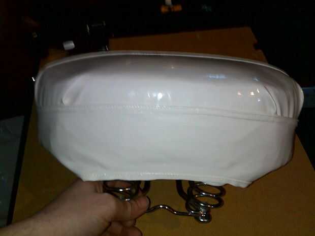 El collar fue envuelto alrededor de la parte posterior del asiento, con la curva natural colocada alrededor de la sección de primavera.