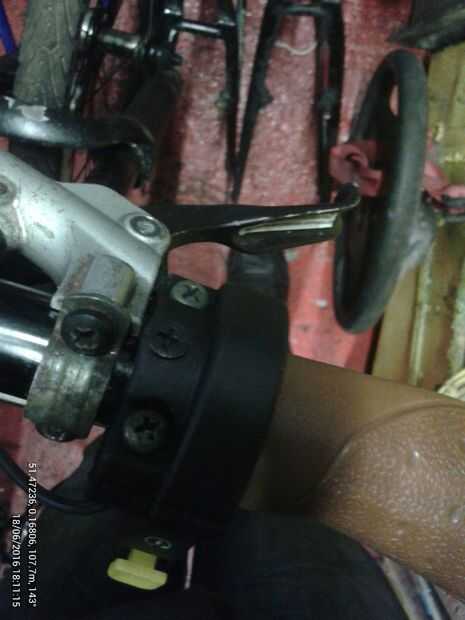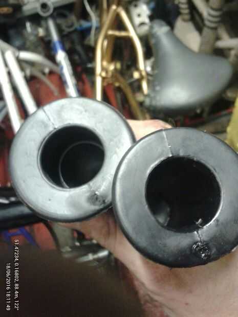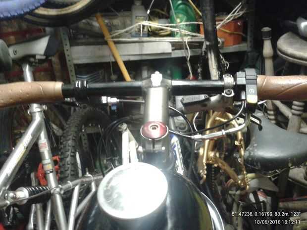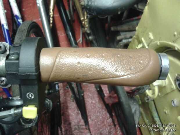 • los stock veía horrible y son incómodos, con cierto esfuerzo y un rayo grasiento quitaron y poner algo mejor, tuvo que ser cuidado de no dañar la válvula reguladora mientras que se hace mal, como medida de seguridad añadí una pinza en el extremo de la barra en caso el apretón de la torcedura se cae a pedacitos.