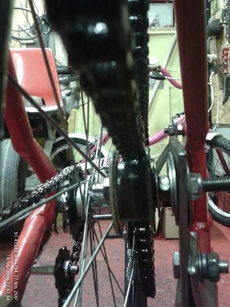 el práctico de costa es estrecha y el marco es amplio, y tener una gran cadena en la parte delantera agrava el problema. la rueda es un rayo del 32, el perno de motores en rueda dentada se diseña para 36 ruedas de rayo, fijar el piñón a la rueda a pesar de la alineación de habla mal no dos difíciles, tho que rápido un par de tornillos, necesitaba a true la rueda un poco después de instalar el piñón en la rueda recién construida (primera rueda iv jamás construido)