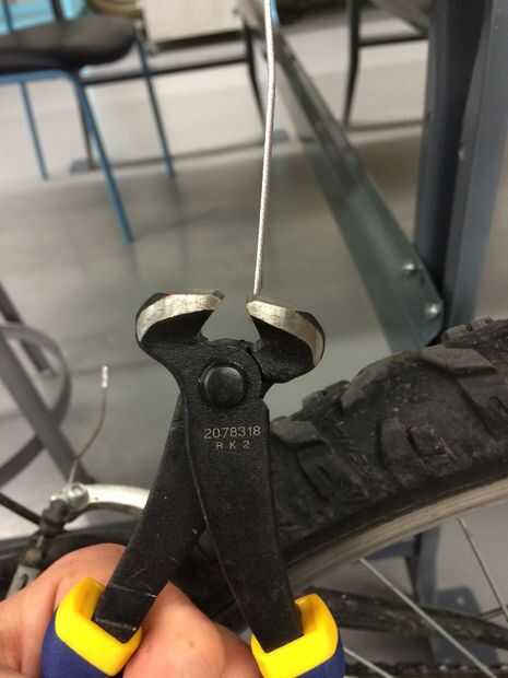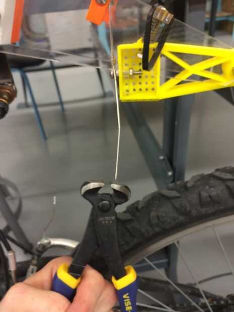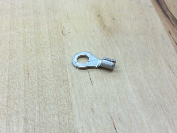 4) el cable debe conectarse al mecanismo. Usé un clip terminal eléctrico para conectar el cable a la unidad. Un perno debe colocarse en la parte posterior del mecanismo donde pasa el cable. La pinza eléctrica poco encaja justo en eso perno y se puede apretar hacia abajo con una tuerca. Esto fue una manera sorprendentemente segura y sencilla para conectar mi cable de bicicleta.