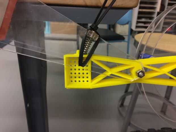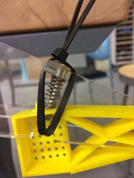 1) para hacer que todo springey, puse un tornillo a través de los soportes de montaje en el brazo de tiro. A continuación os pongo un pequeño resorte en eso perno. Esto hace que el dispositivo vuelve a su casa después de cada tirón de la palanca.