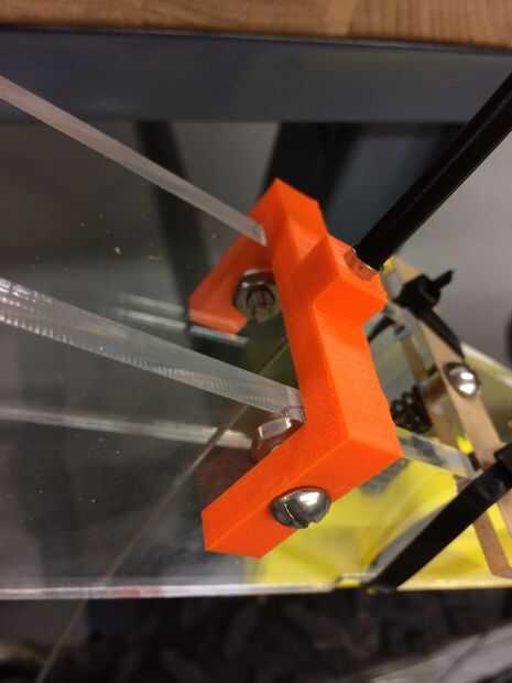 3) la caja es devuelto a la ménsula de montaje donde se montan con una pequeña parte impresa 3D (naranja en las fotos)
